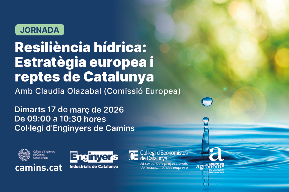 Aquest plantejament europeu coincideix amb moltes de les propostes formulades per l’Observatori de l’Aigua de Catalunya, impulsat pels col·legis d’enginyers de Camins, Agrònoms, Industrials i Economistes, amb l’objectiu de dotar Catalunya de les infraestructures i els instruments de governança necessaris per garantir la resiliència del sistema hídric en l’horitzó 2050.