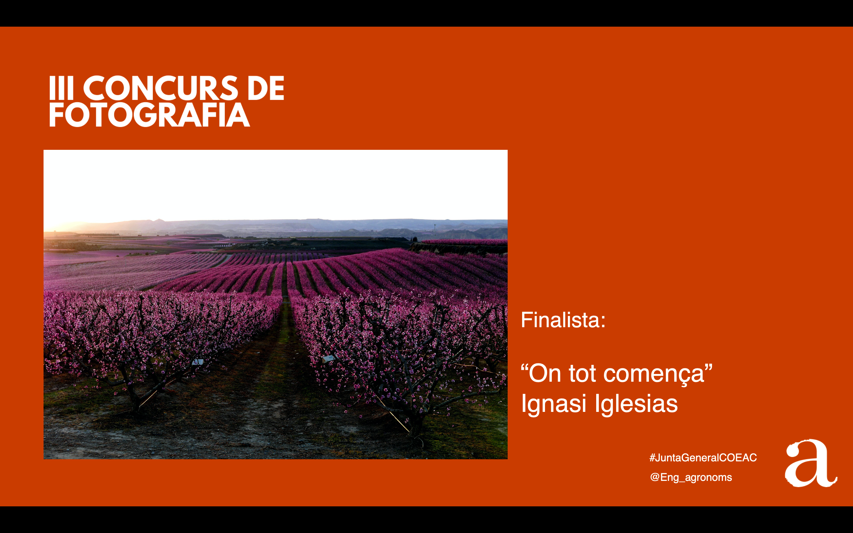 Tot seguit, es van presentar les fotografies guanyadora i finalistes del III Concurs de Fotografia del COEAC. La degana Silvia Bures va comentar: “cada vegada se’n presenten més i de més qualitat, i per tant és difícil poder donar el premi” i les que van destacar foren: